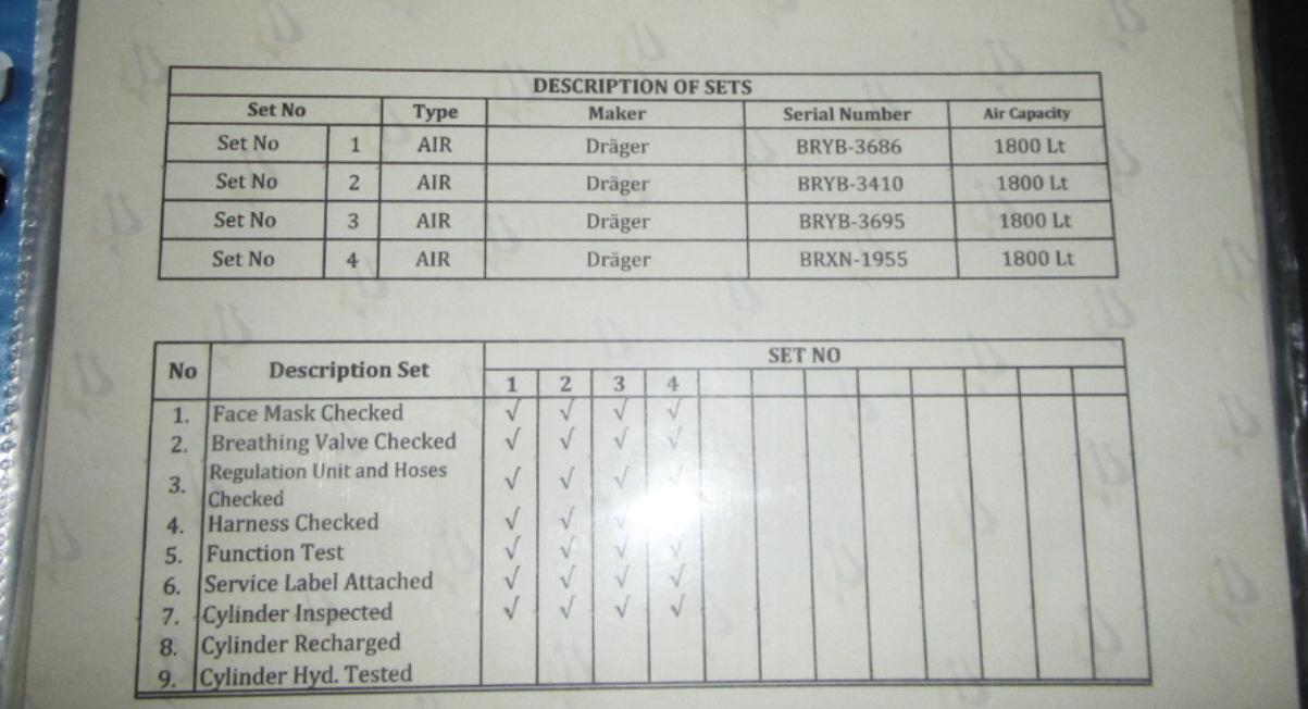 Upon reviewing the Fire & Safety Plan, we found it referenced three SCBA units in the bosun store and a total of five units onboard, a clear mismatch with the current inventory. This inconsistency warranted a deeper investigation.